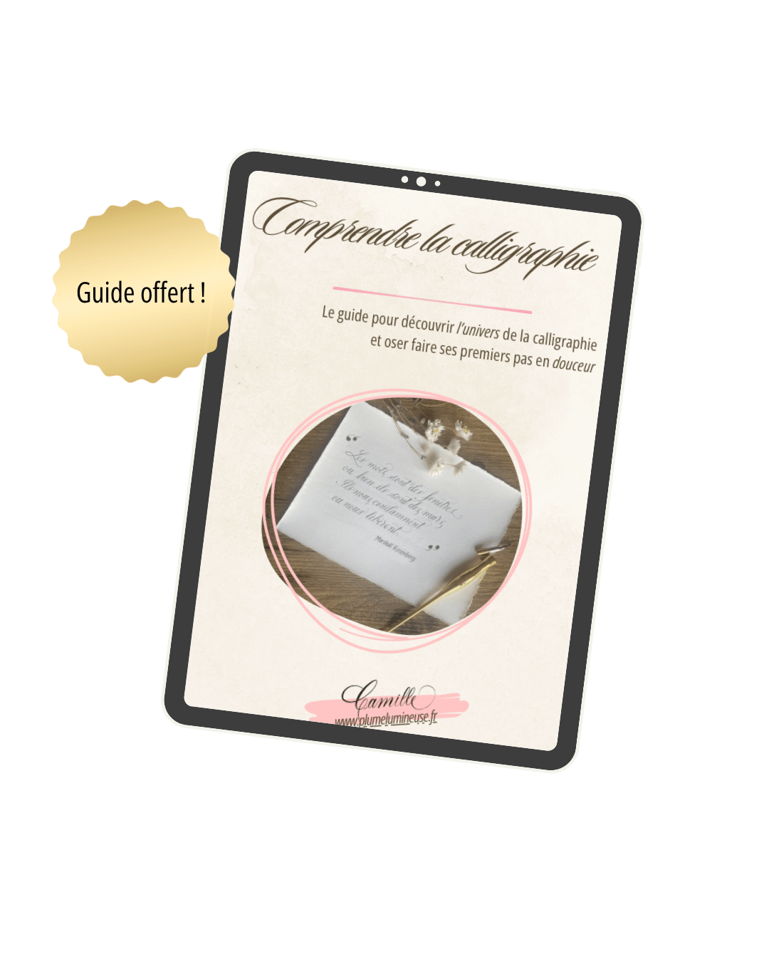 Téléchargez votre guide gratuit pour tout savoir sur la calligraphie et commencez à créer dès aujourd’hui avec des exercices simples.